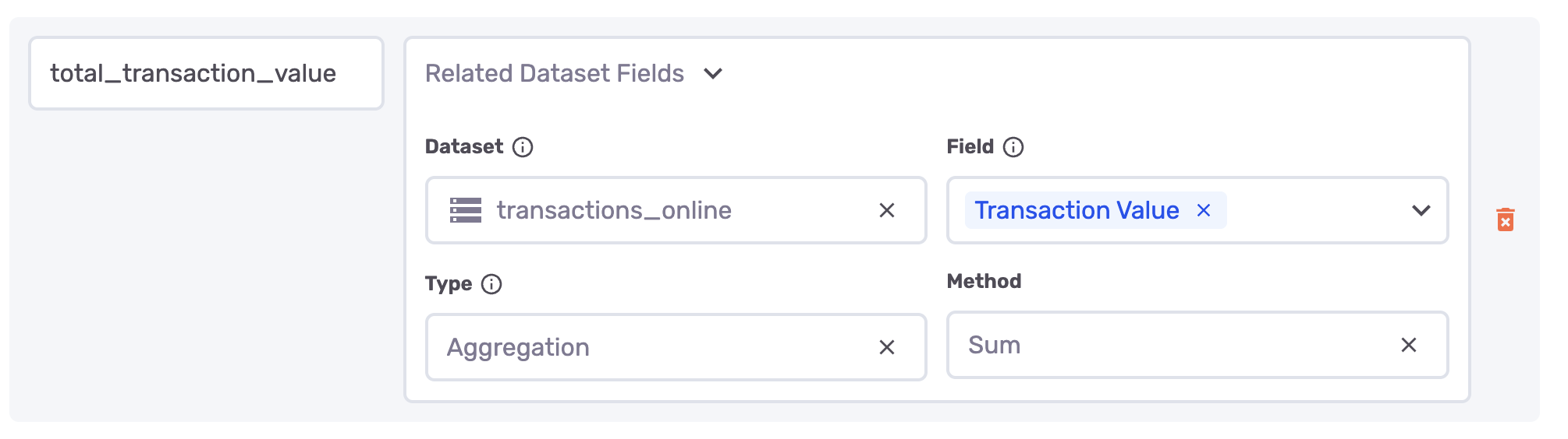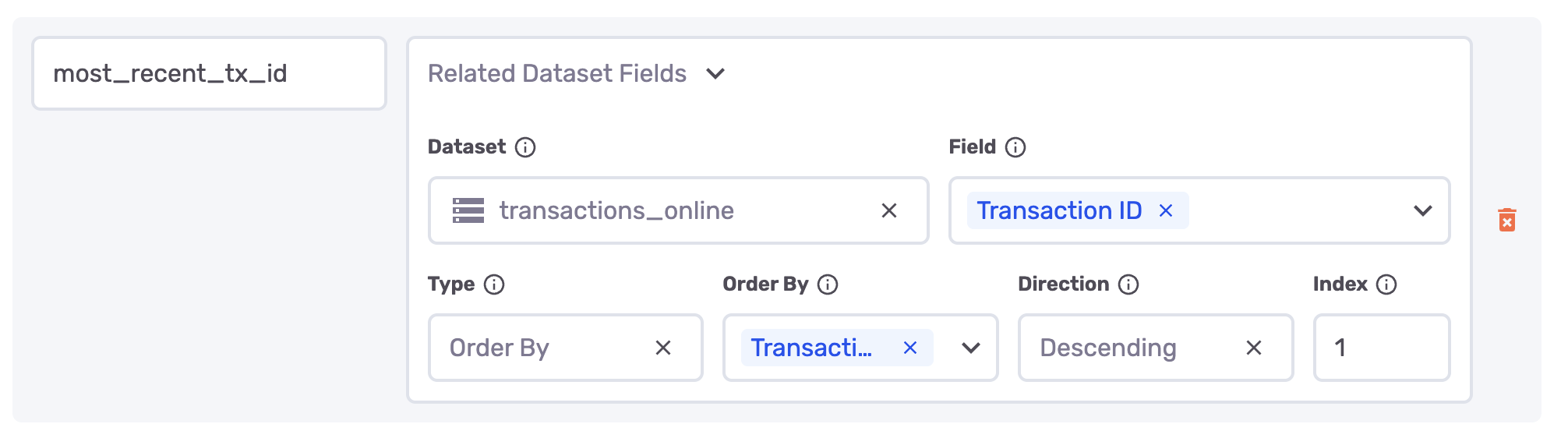 Now let's create a custom attribute using a field from a secondary table in your DatasetGroup (the Transaction table). The transaction table has the transaction_value as a column which we'd like to save as the custom attribute.