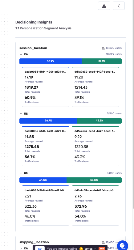 In this mode, the algorithm considers individual customer characteristics when deciding which variation to assign. Two customers with different profiles may be routed to different variations, even at the same point in time.